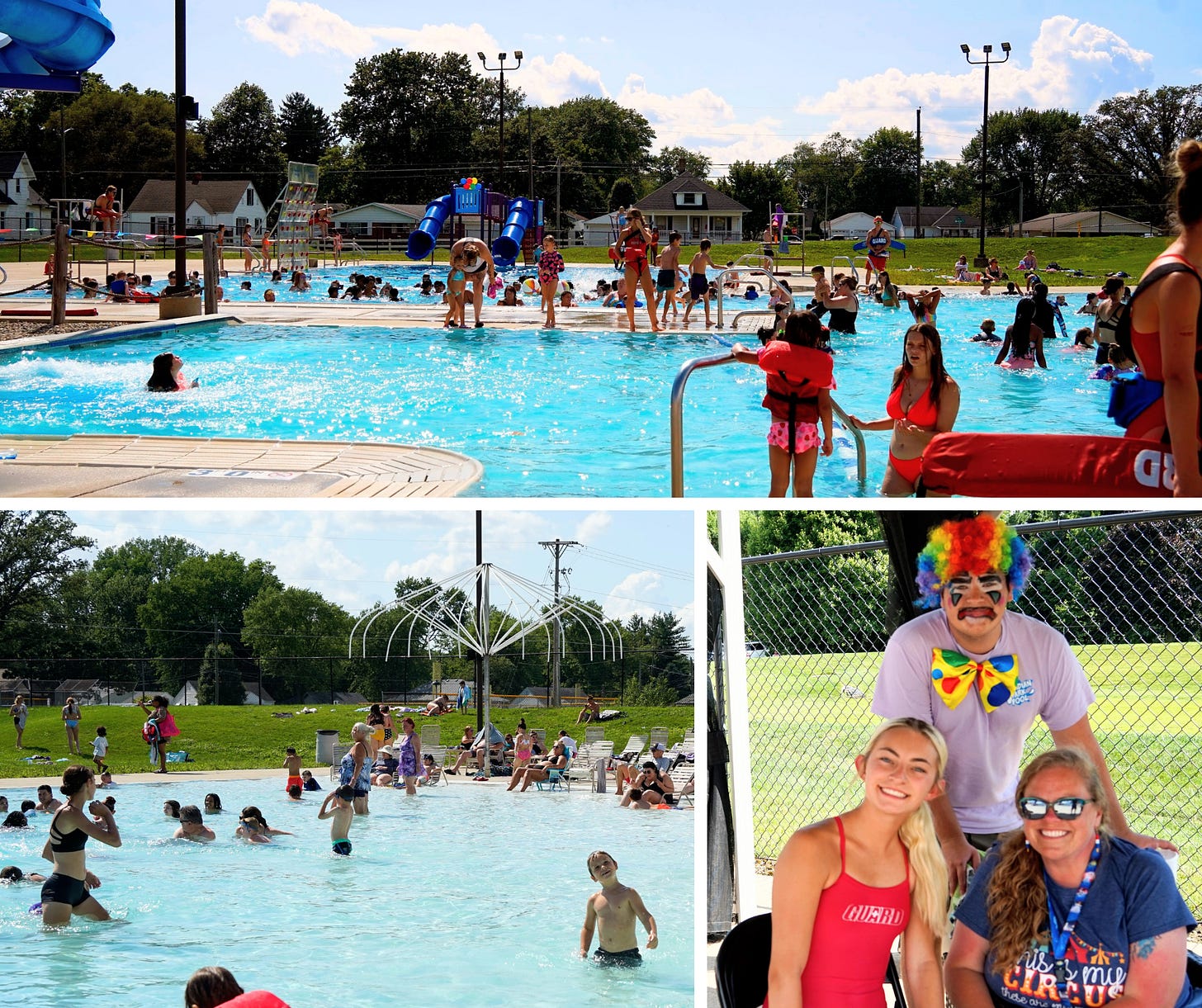 Over 1,000 adults and children took advantage of yesterday’s free Community Day at the Meridian Park Family Aquatic Center. Lower right: Parks employees Chevelle Prather, Boston Sadler and Jenna Meyer supervise the fun. | photos by JACK BOYCE