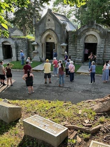 Attendees at this week’s program hear from Donna Dennison about those entombed in the Forest Hill Mausoleum section. | submitted