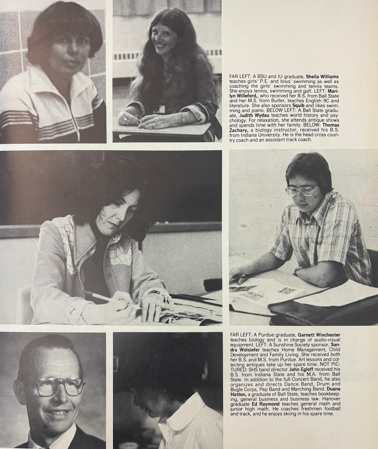 1985: Shelbyville High School French students, led by teacher Thoma Bastin, earned first place in a French version of the Brain Game during Language Day at Indiana State University. Seniors Tammy Blevins, Andy Simpson, Susanne Stine and Diana Thomas competed against seven other schools, answering questions on French history, culture and grammar. The team received an engraved plaque recognizing Shelbyville as the Outstanding High School in French culture and civilization.