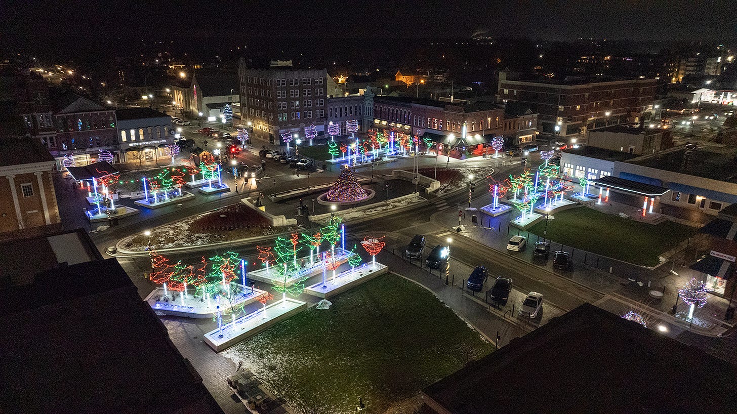 Shelbyville’s Public Square, viewed from the southeast corner, is decorated for the holidays. | photo by JOHN WALKER