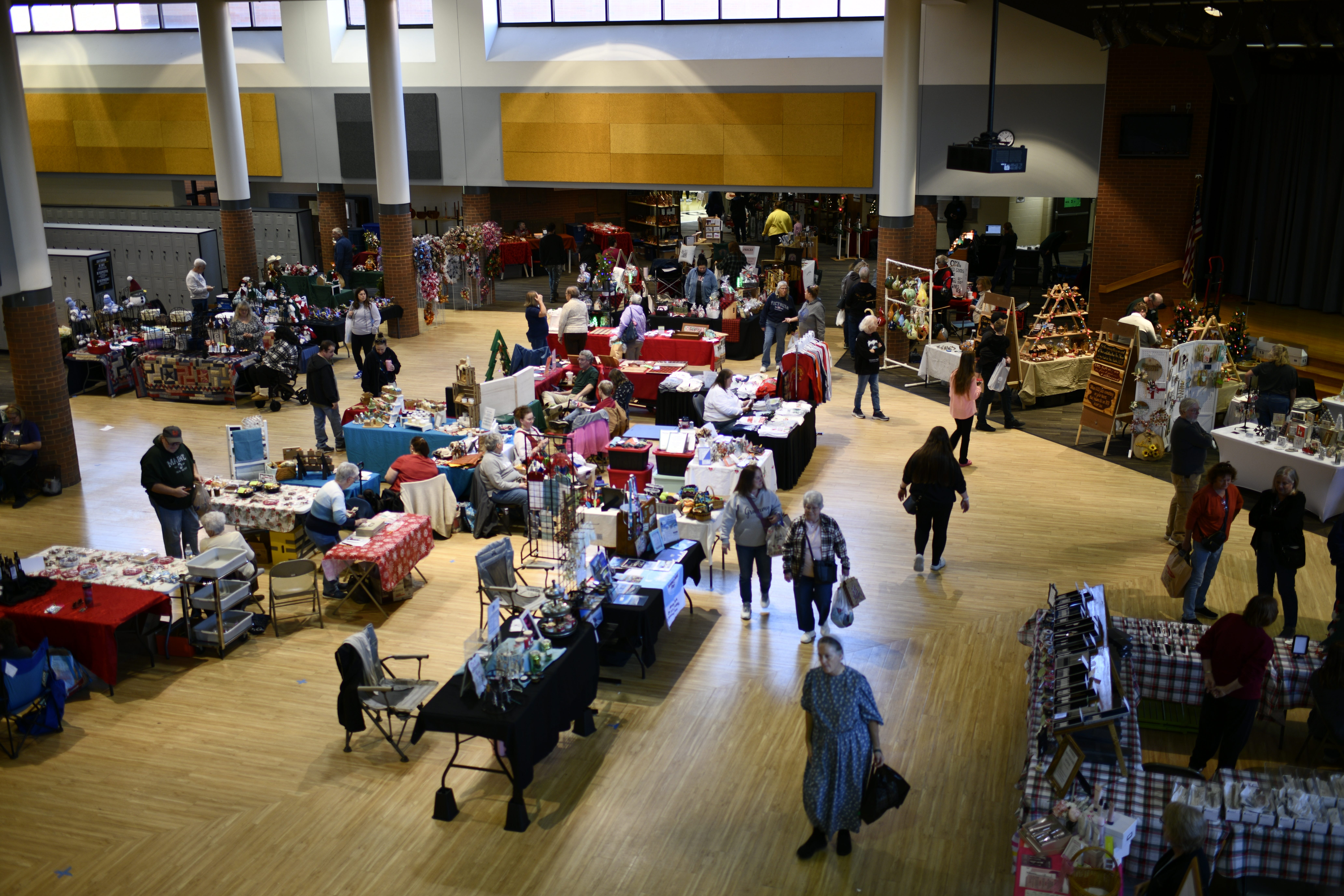 Shoppers browse booths featuring handmade gifts and holiday decor during the 53rd annual Shelbyville Gift & Hobby Show yesterday afternoon at Shelbyville Middle School. | photo by KRISTIAAN RAWLINGS