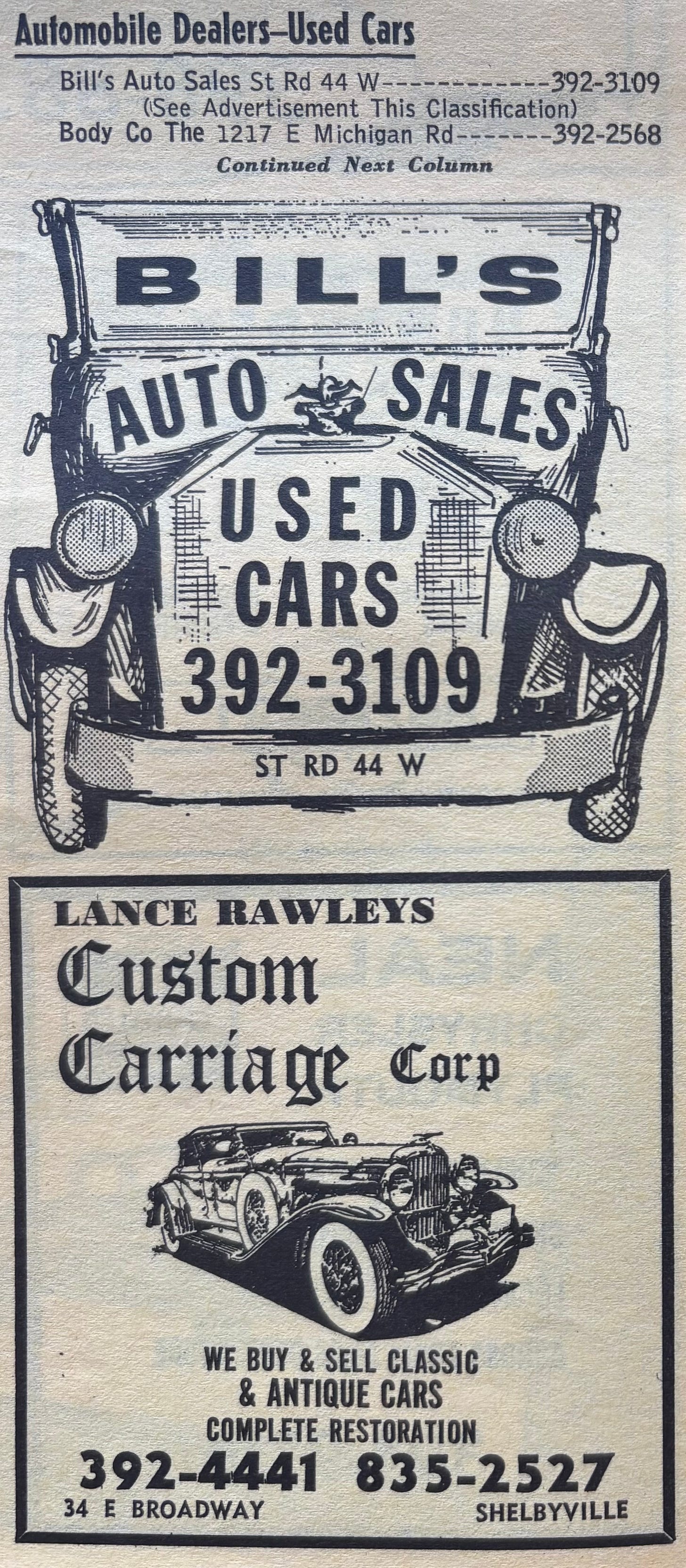 1965: Rural mail carrier Howard T. Lewis retired after 44 years of service. He had been driving a 60-mile route for the previous 11 years. He had started as a clerk at the Shelbyville Post Office in 1921.