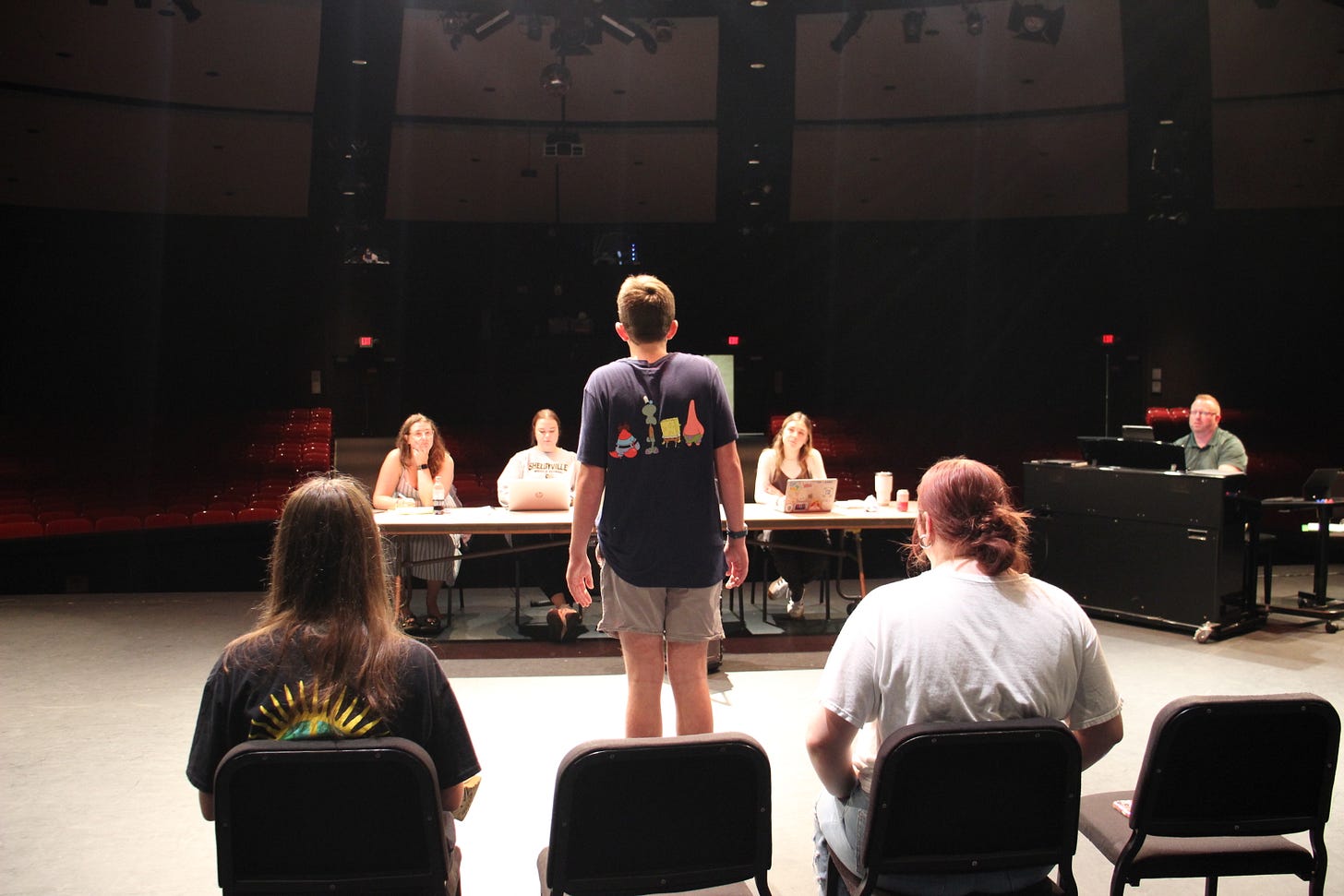 Shelbyville High School student Alex Bunton auditions yesterday for the upcoming SpongeBob musical. | photo by KRISTIAAN RAWLINGS